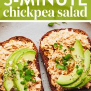 I needed a quick lunch idea and made this today for lunch! Really easy and yummy! I halved the recipe to 1 can of chickpeas so enough for 2 lunches. I served it over toasted english muffin with avocado and sprinkled everything bagel seasoning on top. Delicious!