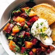 You could roast up some sweet potatoes or carrots in place of the beets if you’d prefer. Won’t have the same flavor but still yummy!