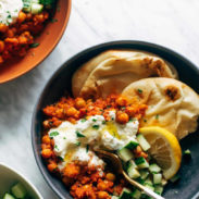 Wow, thank you so much for this recipe! I made it for my family of four, and we served a few kalamata olives on the side. Everyone loved it, and we actually looked forward to leftovers the next night. I think I just wanted an excuse to make/eat more whipped feta. Also, we served with little garlic naan circles of bread which were heavenly. Perfection, I would make this ever single week.