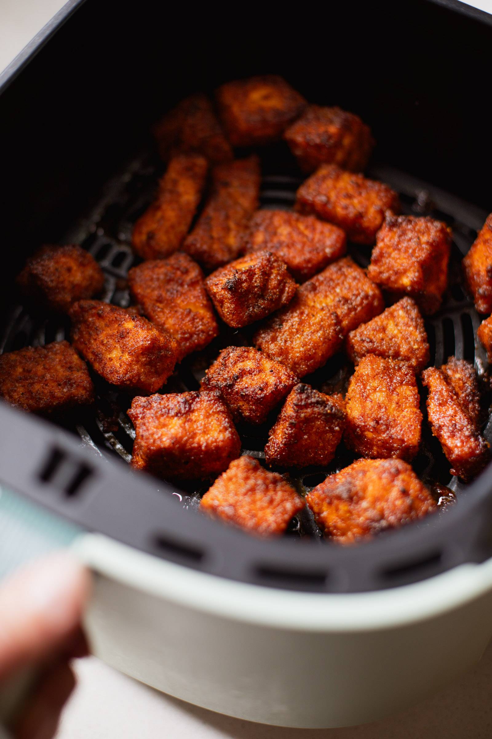 • If you’re air-frying salmon: remove the skin after air frying.