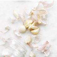 When I came back to this post to see if I had any replies I noticed the garlic press note under “related tools”–“We love our garlic press!” Huh? If so, why all the angst about how to peel garlic? Just use your paring knife to cut off the hard top of the clove and pull down/off a strip of the peel, put the clove peeled side down into the press, and . . . press. You do have to clean out the press after each clove or two, but that’s pretty easy. If you want a big batch of roasted garlic, then of course you don’t peel it until afterwards, when you just squish out the roasted garlic between your fingers. So . . . I’m very puzzled!