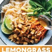 Lemongrass Vermicelli Salad – a summer showstopper! A twirl of vermicelli noodles, pan-fried tofu, fresh herbs and veggies, and a lime-and-lemongrass-based sauce that just slips all over the plate.