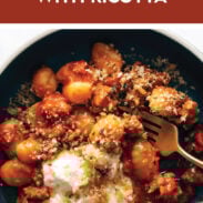 Well, that was amazing!! I thought I didn’t like gnocchi, but for some reason I wanted to give this a chance. So glad I did!! I think the gnocchi I tried before was Trader Joe’s and frozen in sauce already. Yucky. I used De Cecco gnocchi and it was fantastic! It only cooks for about 2 minutes. We aren’t huge meat eaters and I wanted to save time for the sauce so I just used Rao’s Arrabbiata for a shortcut. Heated it in a pan and added the cooked gnocchi. The ricotta and the breadcrumbs are game changers. The zesty brightness from the lemon in the ricotta and the texture from the breadcrumbs are what makes this a millionaire gnocchi! I used dried herbs in both the ricotta and breadcrumbs (because fresh herbs here are $4 per small package… that adds up fast!), and it worked great! Dried Basil, dried parsley, and red pepper flakes in both. Definitely give this one a try!! Thank you so much for the recipe and helping me to give gnocchi another chance!