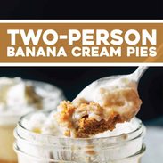 Two-Person Banana Cream Pies! Low maintenance, high enjoyment, unfussy banana cream pies in jars are yours for the taking.